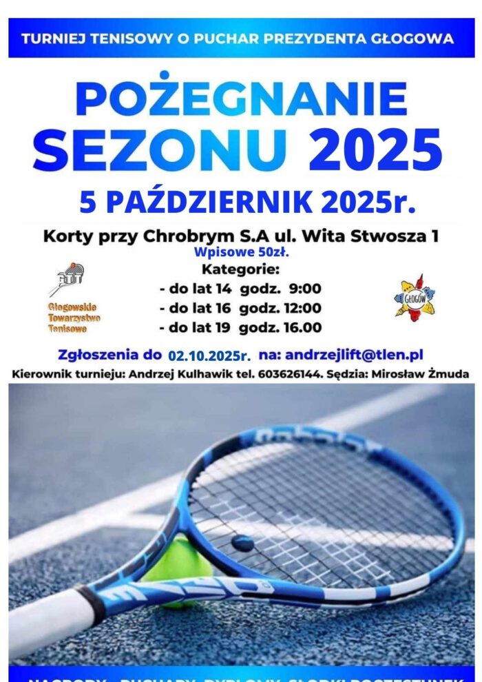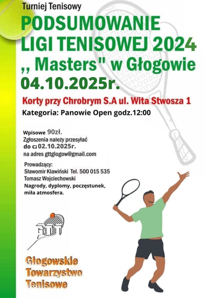 Mistrzostwa Głogowa w singlu i deblu Kobiet i MężczyznMistrzostwa Głogowa w singlu i deblu Kobiet i Mężczyzn został rozegrany w dniu 30-31.08.2025 r. Organizatorem było GTT. W turnieju brało udział 30 zawodników w różnych kategoriach wiekowych z Głogowa, Wrocławia, Legnicy, Nowej Soli, Bolesławca, Zielonej Góry. Zostało rozegranych ponad 60 meczy w ciągu 2 dni. Turniej został rozegrany na obiektach Chrobrego Głogów S.A. i halach tenisowych TennisKluClub. [.. więcej]